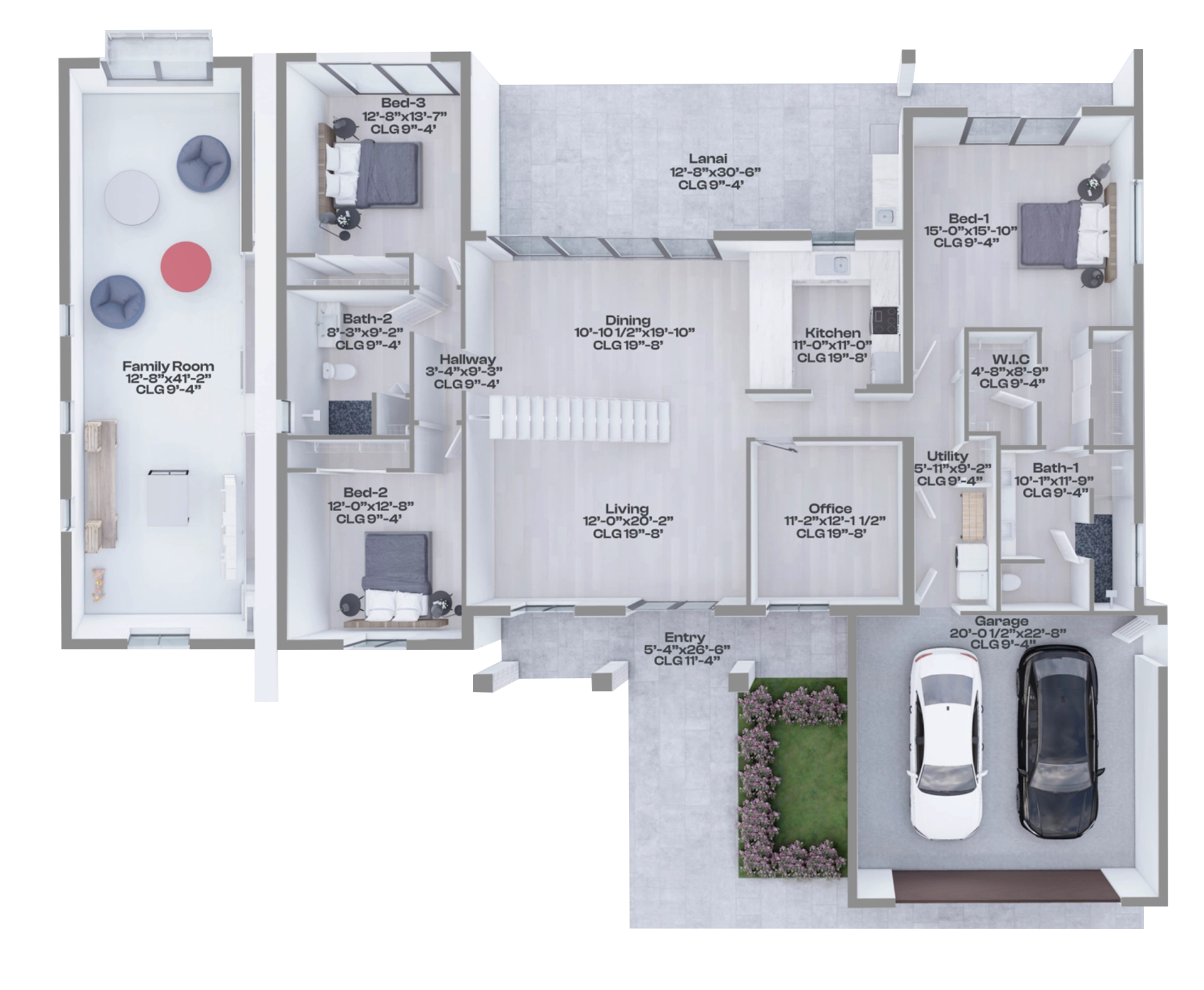 Our first two-story model, with a stunning exterior presentation with additional light and impressive interior height, will be the envy of the neighborhood, a second floor made for sharing and a master bedroom with access to lanai and garage.