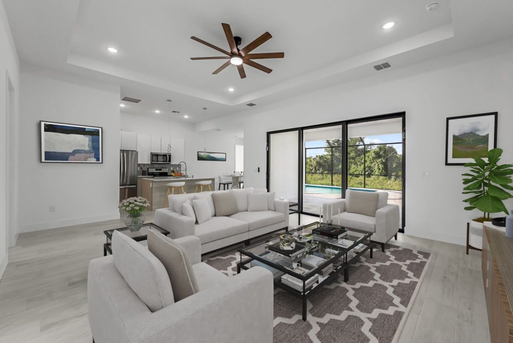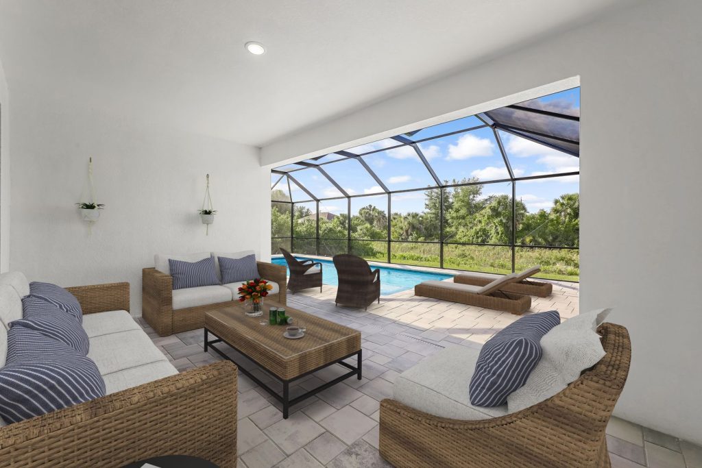 This marvelous model truly has luck on its side, making magical use of space with 1,726 square feet of living area. It features three bedrooms, two bathrooms, and an office, all while maintaining an elegant sense of spaciousness by connecting the view from the entrance to the inviting interior lanai.