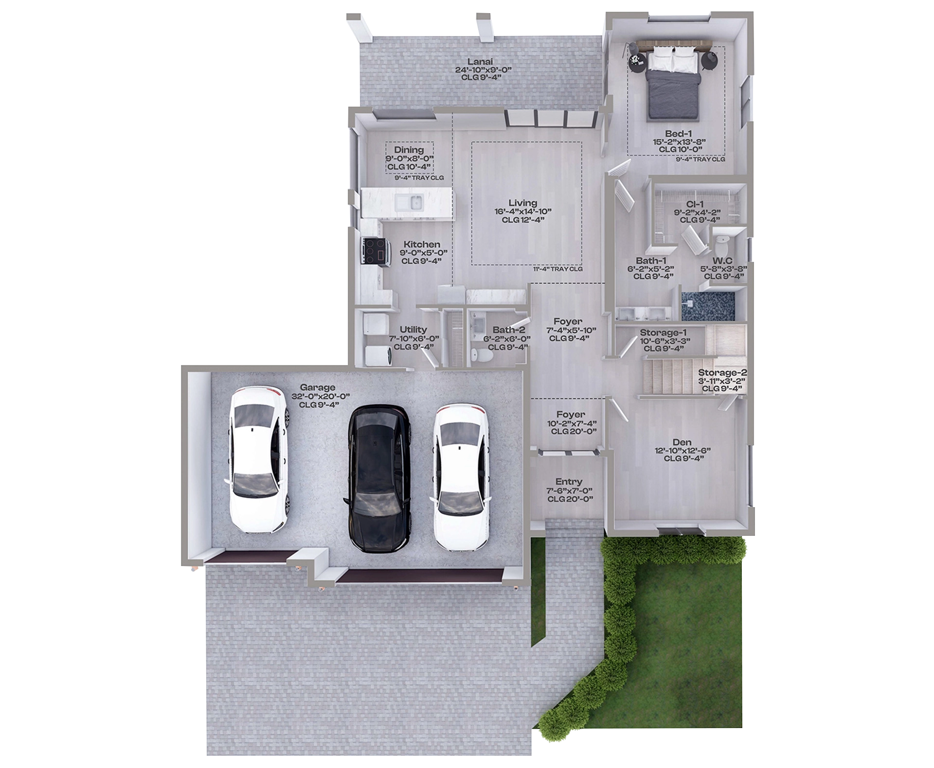 Spacious 3-car garage